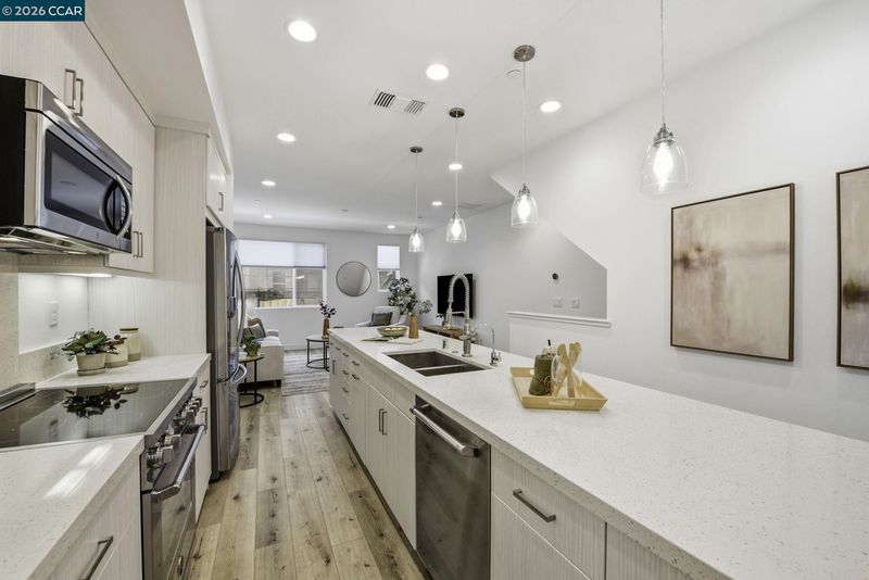 Discover modern urban living in the highly desirable, gated Ice House Community! This stunning, energy-efficient and solar-powered townhouse-style condo is a commuter’s dream—just minutes from BART, major freeways, and the Transbay shuttle. Front entry is located inside the secured gate, offering added privacy not found in all units. Enjoy an open floor plan enhanced by high ceilings and expansive UV-coated windows providing abundant natural light. The upgraded chef’s kitchen showcase high-end Bertazzoni Italian stainless steel appliances, quartz countertops, soft-close cabinetry, and an oversized island ideal for both entertaining and everyday living. Designed for maximum comfort, this home features two spacious suites. The primary bedroom offers dual walk-in closets and a spa-like en-suite bathroom with double vanities and a walk-in shower with bench seating. The second bedroom also includes its own en-suite bathroom, providing excellent privacy for family or guests. Additional highlights include owned solar panels, a Ring doorbell, and a tri-level Nest thermostat. Don’t miss this opportunity to make this beautiful home your own!