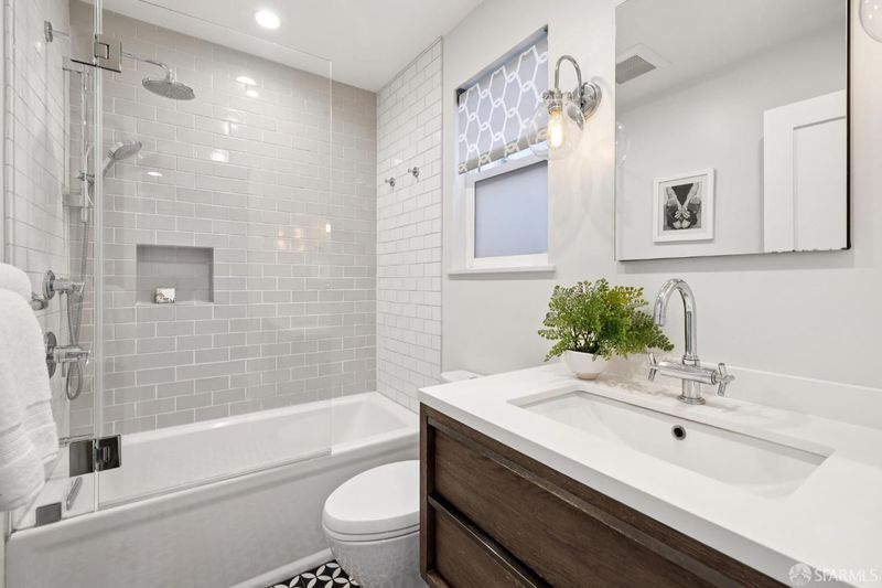 This beautifully remodeled top floor flat is nestled in a boutique three-unit building. Located just one block from the renowned Hayes Valley shops, restaurants and the new Trader Joes, this home places you at the heart of one of San Francisco's most desirable neighborhoods. This urban retreat has a spacious deck with Bison IPE tiles that receives abundant sunlight and offers captivating views of the surrounding neighborhood, including the iconic gold-accented roof of City Hall. The open-concept floorplan highlights beautiful wood flooring, built-in speakers and new lighting fixtures creating a welcoming atmosphere ideal for hosting guests. The remodeled kitchen features a large island, sleek quartz counters, wine fridge and a striking glass tile backsplash. The inviting living room offers a wood burning fireplace for cozy evenings while the dining room has lovely city views. Both bathrooms have been remodeled with quartz counters and Fire Clay Tile. Lighting throughout the residence has been exclusively upgraded with fixtures from Herman Miller, Rejuvenation and Schoolhouse Electric. The Building improvements consist of a newer roof, windows, exterior paint and siding. Laundry, storage,& deck irrigation included.