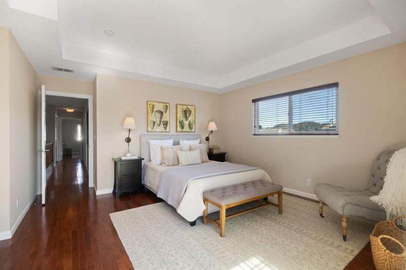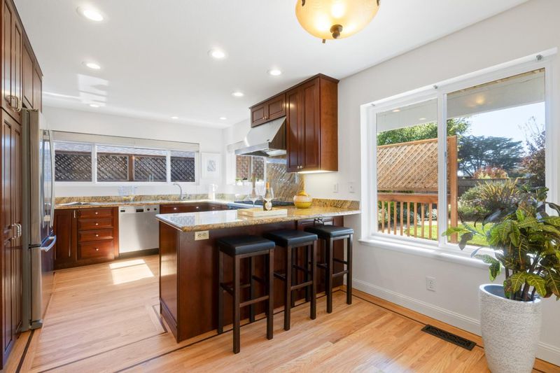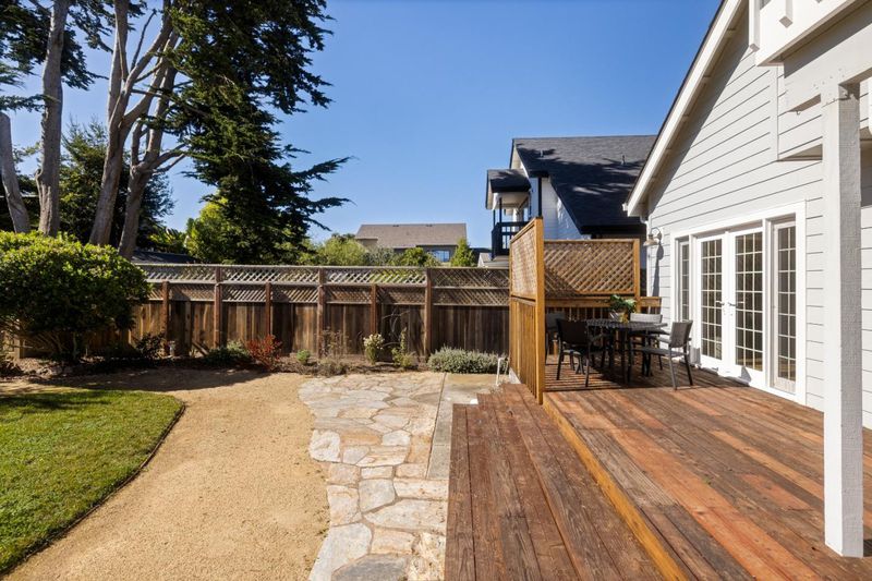 Upon entry, you're greeted by vaulted ceilings and gleaming hardwood floors that lead you into a large kitchen equipped with stainless steel appliances. The open floor plan provides ample space for entertaining or simply enjoying day-to-day life. Skylights throughout the home bring in abundant natural light, creating a warm and inviting atmosphere. For added comfort during those cooler months, two fireplaces are strategically placed within the home. The primary suite is located on the back of the home and features a large walk-in closet. One of the bedrooms and one bathroom are conveniently located on the main level, providing easy access without stairs. The property sits on a generous 5,500 sf lot adorned with lush landscaping that creates a serene outdoor oasis. Enjoy the luxury of an outdoor shower or unwind on any of the decks, patios, or balconies scattered around this beautiful property. Living here places you west of Highway 1 offering convenient access to downtown Half Moon Bay's unique shops, restaurants, and amenities. The ocean is also centrally located to this residence allowing for plenty of opportunities to enjoy beachside activities at your leisure. For those who enjoy green spaces, there's a park just across the street from this residence.