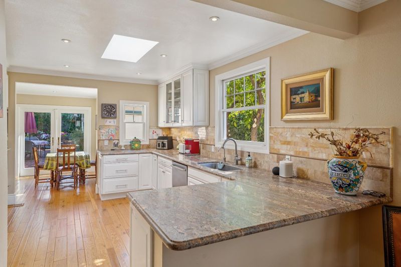 ABSOLUTE JEWEL BOX REMODELED SPANISH BUNGALOW! WALK TO THE AVENUE! Burlingame is famous for its architecture and unforgettable downtown. 732 Paloma delivers this full experience with remodeled character and rare amenities. From your curated Spanish Bungalow, full of handpicked detail & upgrades, you are only a half mile from Downtown Burlingame Avenue...about a 10 minute walk! Characteristic 1920s styling of the Spanish Colonial era: romantic archways & red tile rooflines express the ultimate in charisma. The current owner has intertwined nostalgic touches & modern luxury updates in true connoisseur fashion. At the entry, vintage stained glass was reclaimed from the UC Berkeley Music Dept. Artisan bathrooms of travertine, marble & onyx. Gated driveway leads to detached 2-car garage on this 100% usable 6,650 sq. ft. lot. | Single-story floorplan of 2 beds, 2 remodeled baths + Office (Master Study) | Prime for entertaining | Living Room is elegant gem of coved ceilings, gas fireplace, & western sun | Heart of the home maximizes "Open Concept" of large dining room opening to enormous renovated kitchen | Premium honed granite counters, onyx backsplashes, appliances by Wolf & Sub-Zero | Separate sunny breakfast room with reclaimed brick | Enchanted brick courtyard, deep usable yard |