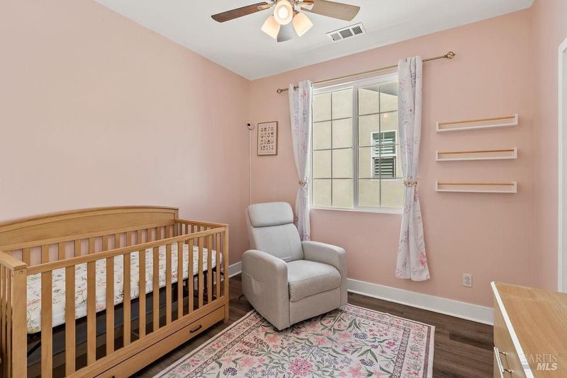 Welcome to beautifully maintained 2022-built home offering 3 bedrooms, 2.5 bathrooms, and approximately 1,777 sqft of modern living space. This light-filled residence features 10-foot ceilings and an open-concept floor plan with spacious living and dining areas, ideal for everyday living and entertaining. The contemporary kitchen showcases quartz countertops, a large center island, stainless steel appliances, and soft-close cabinetry, combining style and functionality. Upstairs, the generous primary suite includes a walk-in closet and a well-appointed bathroom with dual vanities, soaking tub, and glass-enclosed tiled walk-in shower. Additional bedrooms are bright and versatile, perfect for guests, family, or a home office. Enjoy the low-maintenance backyard with patio seating, ideal for outdoor dining and relaxation. This fully electric home with owned solar, including an electric water heater, electric furnace, and Carrier AC, offers energy efficiency, modern comfort, and potential utility savings. Built in 2022, this newer home provides comfort, style, and convenience in a desirable neighborhood. Don't miss this opportunity.