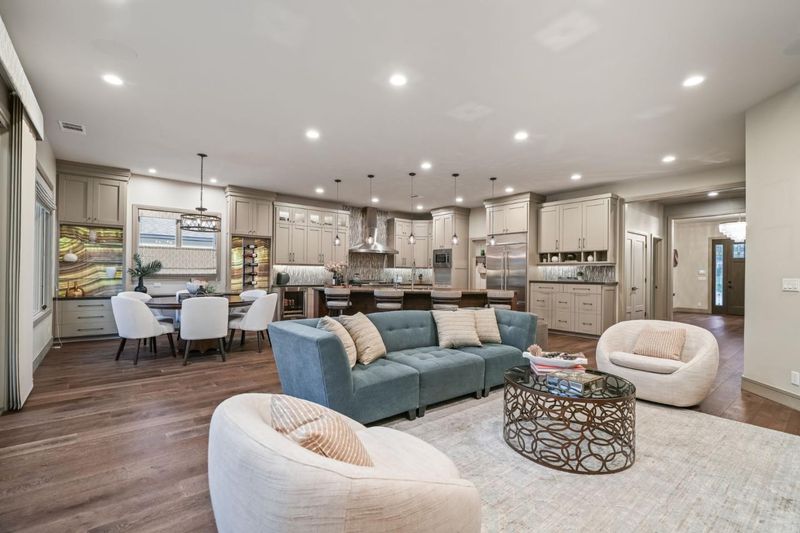 Contemporary, chic & modern residence, this custom re-built masterpiece is defined by its clean, architectural lines and a seamless, open-concept floor plan. Soaring ceilings, rich, wide-plank floors draw you into the spectacular great room where all public spaces flow seamlessly. Every detail in this urban beauty has been curated with high-quality finishes and exceptional craftsmanship. Incredible ambiance is palpable at every turn, nowhere more so than the chef's kitchen: a stunning culinary work of art w/leathered quartz counters, backlit onyx accents, custom cabinetry, sleek, top-of-the-line appliances. A perfect blend of high-performance, function and dazzling design. 4 bedrooms, each with an abundance of space. Primary suite offers built-ins, dual walk-in closets w/custom organizers and access to the private yard. 8 ft doors open to the backyard oasis stone paver patio, wood arbor and a built-in fire pit offering the ultimate indoor/outdoor living experience. Private drive w/covered patio leads to an oversized 2 car garage w/built-ins. Other features: Custom mudroom and to die for pantry; exotic wood paneled walls, backlit built-ins/Solar/high-performance/ energy-efficient/heated floors & more! This stylish sanctuary but a smart investment for years to come.