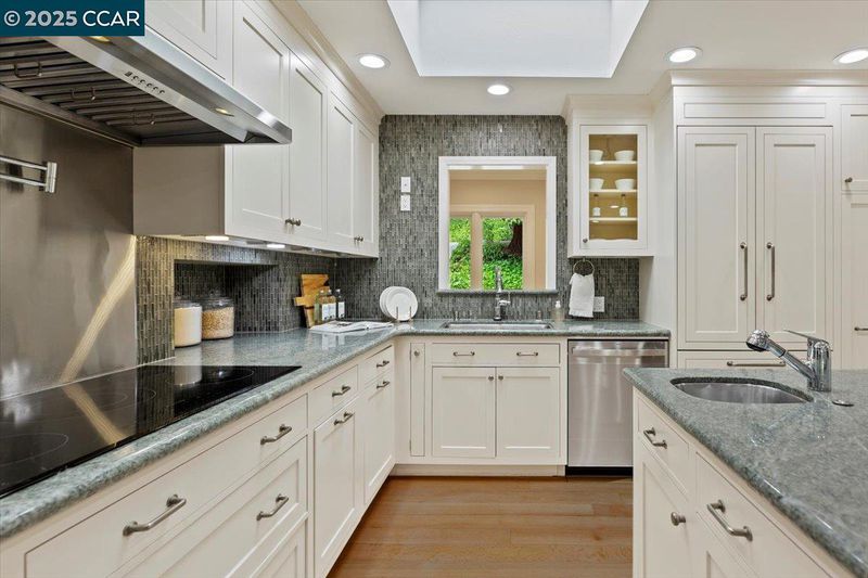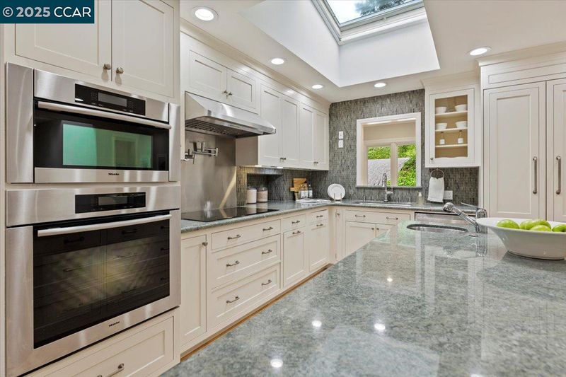- Dishwasher, Electric Range, Plumbed For Ice Maker, Refrigerator, Dryer, Washer, Gas Water Heater, Stone Counters, Electric Range/Cooktop, Disposal, Ice Maker Hookup, Kitchen Island, Skylight(s), Updated Kitchen