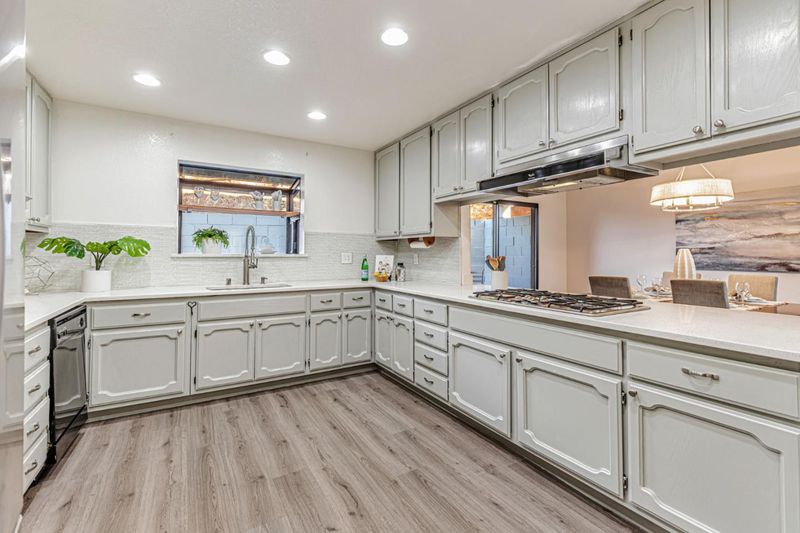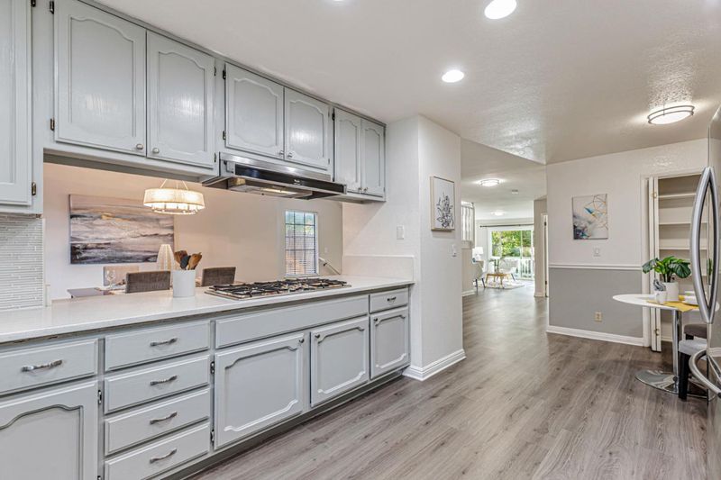 - Cooktop - Gas, Countertop - Quartz, Dishwasher, Garbage Disposal, Hood Over Range, Oven - Electric, Pantry, Refrigerator