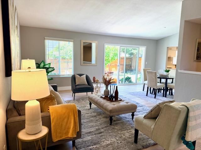 Welcome to this tastefully updated corner home with a beautiful curb appeal, nestled in a well-established neighborhood. This charming rancher features 3 bedrooms and 2 baths and a cheery family room with a cozy fireplace. This home boasts newly installed laminate flooring, fresh interior paint and new French dual-paned windows for comfort and style. It offers an updated kitchen with quartz countertop, modern cabinetry with slick handles, stainless steel appliances and recessed lighting. It has refreshed bathrooms showcasing tiled shower walls and quartz vanities. The generously sized bedrooms feature mirrored closets and ceiling fans. Energy efficient home with solar panels. Situated on a good sized corner lot, the expansive backyard offers mature fruit trees and a perfect haven for outdoor barbecue. Ideally located close to shopping, schools, parks and restaurants and just minutes away from BART for an easy commute.