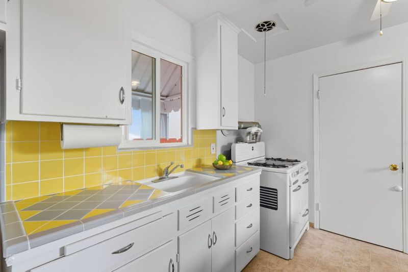 This classic single level home lives up to its street name Sapphire a real gem. Bursting with personality, the 2-bedroom, 1-bath residence is a true retro gem with its playful pink-and-green bath and bright, cheery yellow kitchen complete with a coveted Wedgewood stove. Inside, enjoy refinished hardwood floors, newer windows throughout, and the peace of mind of a newer roof. The attached one-car garage includes front-loading washer and dryer for convenience. Step outside to impeccable landscaping roses and hydrangeas frame the front, while the backyard offers a covered patio & pavers perfect for entertaining, and a more flourishing hydrangeas and a lemon tree ready for picking. Located within walking distance to Red Morton Park, Dehoff's Key Market, and neighborhood favorites, this home combines vintage charm with modern updates. Add your personal touch, and you'll have home sweet home in the heart of it all.