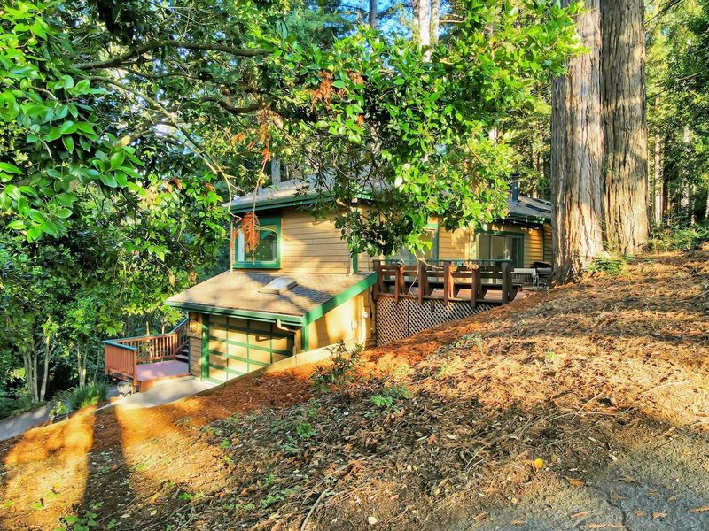 Tucked away in a quiet valley and embraced by towering redwoods, this inviting mountain home is the ideal getaway for those craving serenity and a close connection to nature. Designed to harmonize with its surroundings, the home features soaring ceilings, expansive windows, and sliding glass doors that flood the space with natural light and forest views. Perfect for indoor-outdoor living and entertaining, the open-concept layout flows easily onto a private patio, ideal for grilling, relaxing, or gathering with friends. In the heart of the home, the kitchen and dining area are warm and welcoming, with plenty of space for hosting. The bedrooms are generously sized, with the primary suite offering a luxurious ensuite, built-in closet, and a private deck tucked into the trees. Above the bedrooms, cozy loft-style nooks provide the perfect hideaway for reading, play, or quiet retreat. A flexible fourth bedroom is currently outfitted as a home gym, ideal for fitness, a hobby room, or a home office. A spacious workshop with plenty storage space, and the attached two-car garage adds even more functionality. Whether you're seeking a full-time residence or a peaceful weekend escape, this redwood valley retreat offers the perfect blend of comfort, natural beauty, and laid-back living.