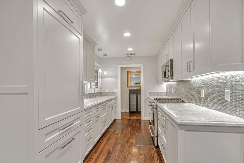Move right into this beautifully remodeled single-story home, ideally located at the border of Los Altos and Cupertino.Just minutes from Apple, Google, and LinkedIn and, close to top-rated schools, this residence offers both convenience and lifestyle.Inside, the home showcases oak hardwood floors, recessed lighting, and a sleek remote-controlled fireplace.The gourmet kitchen is a true centerpiece, featuring quartzite countertops, premium appliances, a panel-ready refrigerator, a Sub-Zero wine cooler, and custom maple cabinetry.The common bath has been thoughtfully updated with modern fixtures, wainscoting, marble countertops, and a contemporary finish.The primary suite provides a private retreat with restroom, a smart LED-lit mirror medicine cabinet, Toto toilet, and a spacious shower.Dual pane windows throughout. Outdoors, enjoy a private wraparound backyard designed for relaxation and entertaining, complete with a spa, citrus trees, fountains, and vibrant landscaping.A two-car garage adds everyday practicality to this stunning property.