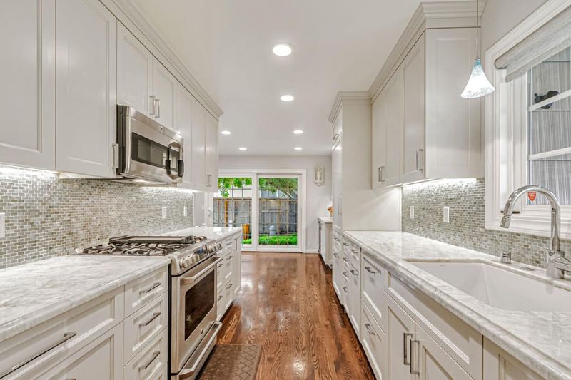 - Cooktop - Gas, Dishwasher, Garbage Disposal, Hood Over Range, Ice Maker, Microwave, Oven - Gas, Refrigerator, Wine Refrigerator