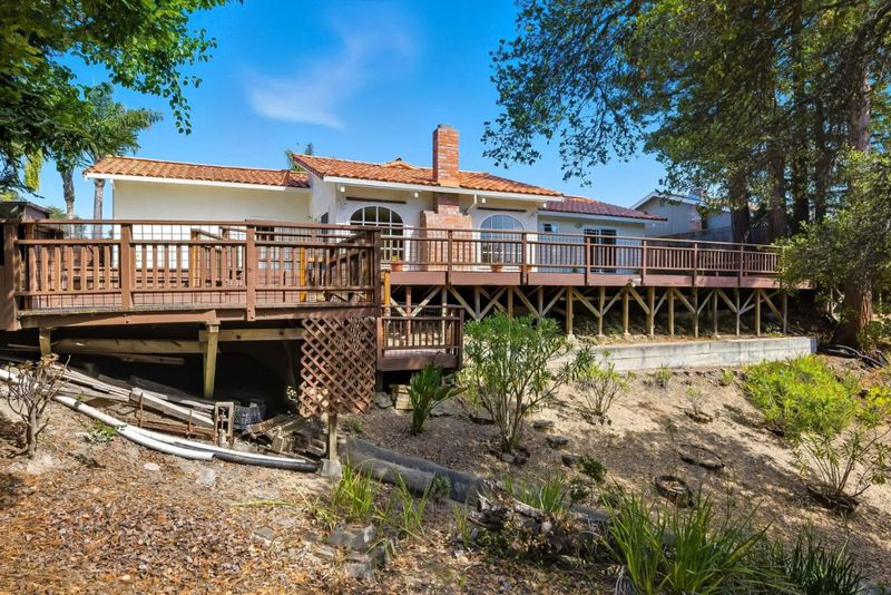 Single level Santa Cruz Gardens home backing to green space with privacy and views. Mediterranean styling with stucco exterior, tile roof, and palm trees out front. Great floor plan with a large living room with vaulted ceilings, arched windows, gas fireplace, and an adjacent dining area. Kitchen features a pantry, gas stove, island, and bay window over the sink. Step outside to a sunny deck overlooking the greenbelt plus a side yard for gardening or play. Extra deep 2 car garage with laundry area and room for storage or workshop. Recent quality updates include new electrical panel, interior paint, new carpets in bedrooms, roof and gutter work, tree maintenance and much more. Sale also includes an additional 2.75-acre parcel (not buildable) that provides extra privacy.