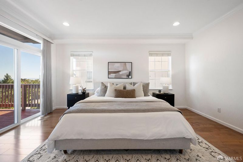 Welcome to 310 Goodwin Drive, a beautifully maintained home in the highly desirable Portola Highlands neighborhood of San Bruno. Set in a peaceful hillside setting, this residence offers stunning panoramic views, bright interiors, and a functional layout designed for comfortable living. Step inside to a light-filled main level featuring soaring ceilings, abundant natural light, and rich hardwood flooring that create a warm and inviting atmosphere. The seamless flow between the living, dining, and family areas makes the space ideal for both everyday living and entertaining, all enhanced by expansive windows that showcase sweeping views and bring the outdoors in. The well-appointed kitchen features a center island, ample cabinetry, and an open connection to the family room, making it a natural gathering space for daily living and hosting. A standout feature of the home is its thoughtfully designed floor plan with all bedrooms located on the lower level, offering privacy and separation from the main living areas. This layout provides a quiet retreat while maintaining a functional and comfortable flow throughout the home. Additional highlights include an attached two-car garage, well-maintained interiors, and a strong sense of pride of ownership throughout. Conveniently located near major commuter routes, shopping, dining, and everyday amenities, this home offers the perfect balance of accessibility and serene hillside living. A rare opportunity to own a view home in one of San Bruno's most sought-after communities.