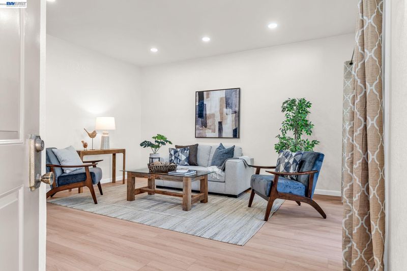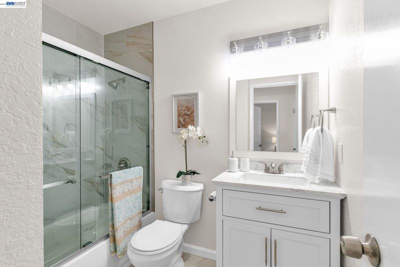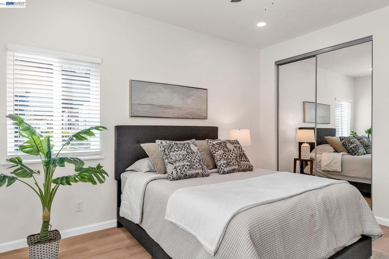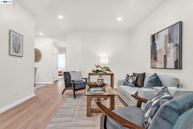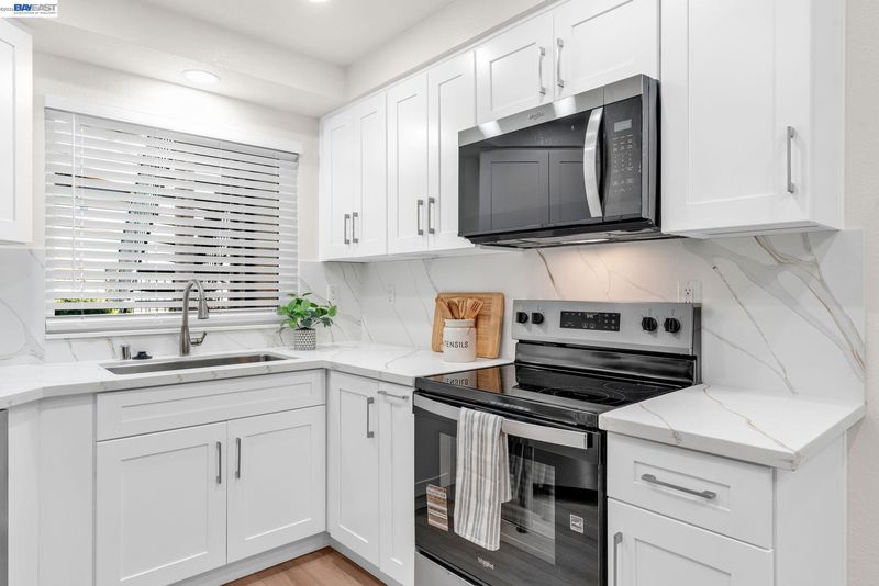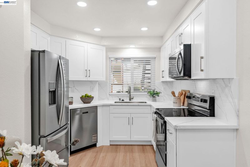 Welcome to this beautiful north-east-facing downstairs corner unit. This updated condo is located in a prime location in San Leandro. Enter to a bright and inviting living room, ideal for relaxing or entertaining. The upgraded kitchen features white shaker cabinets, quartz countertops, stainless steel appliances, and a beautiful backsplash, along with an adjacent dining area. Tastefully remodeled bathrooms have new vanities, toilets, tiles, mirrors, light fixtures, and shower doors. Attention to detail includes new waterproof vinyl flooring, fresh interior paint, dual-pane windows with coverings, recessed lighting, mirrored closet doors, all-new fixtures, and an updated electrical subpanel. In addition to the home's appeal, enjoy the convenience of in-unit laundry. The front yard includes a patio, space for barbecuing, and extra storage, perfect for unwinding after a long day. Close to the shopping center, restaurants, and Kaiser, with easy access to 880/580.